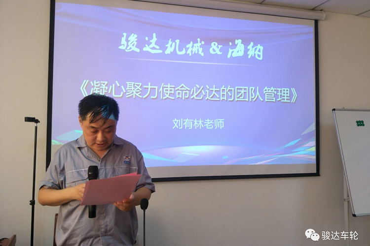 《凝心聚力使命必达的团队管理》现场培训6月6日在公司南二楼会议室进行,培训由海纳管理学院刘有林专家老师授课,公司党委书记、副总经理张铁岩、行政总监张德彦、生产总监汪有国、质量总监陈志刚及班组长以上管理人员共计50余人参加了培训。